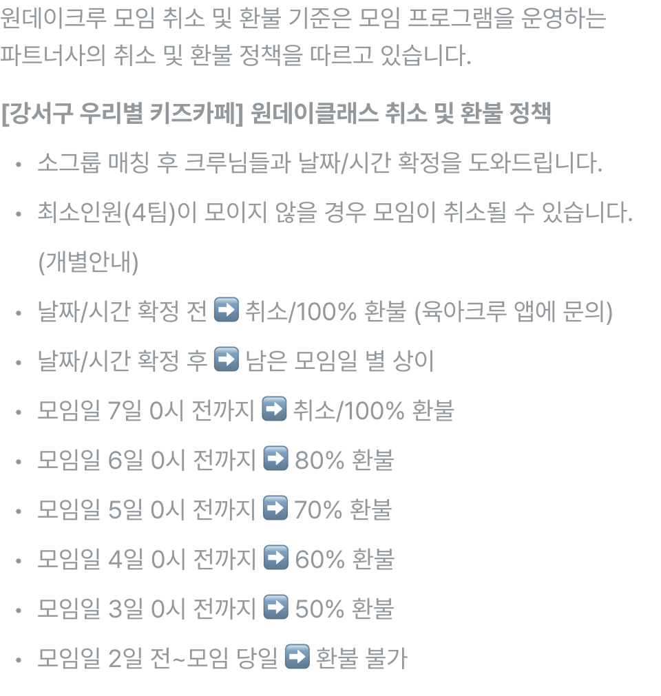 - 입금 확인 후, 육아 프로필과 가능한 시간대를 고려하여 소그룹 매칭이 진행됩니다.