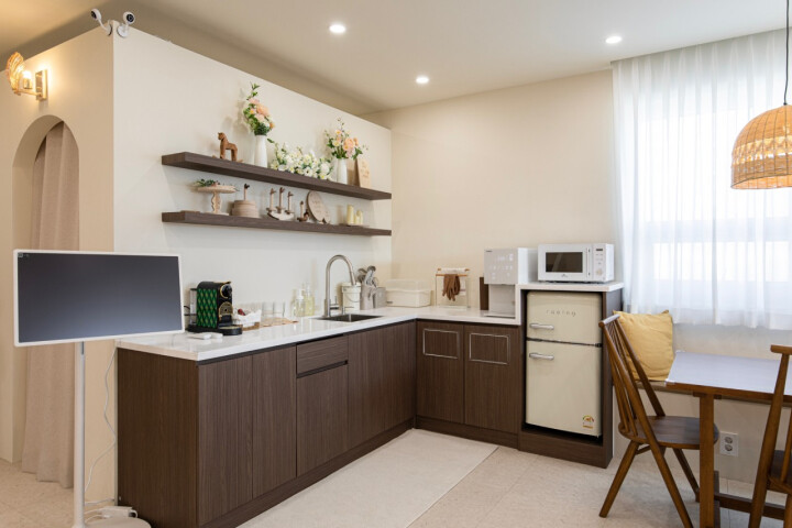 식기 세트, 낮잠이불, 샤워 타월에 커피머신까지 세심하게 준비되어 있어요!