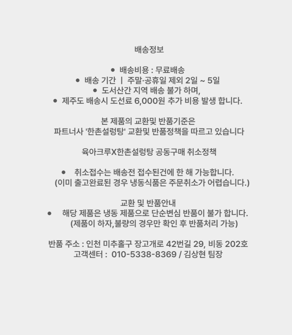 - 제품 구매/배송 문의 : 카카오톡 플러스친구 @육아크루