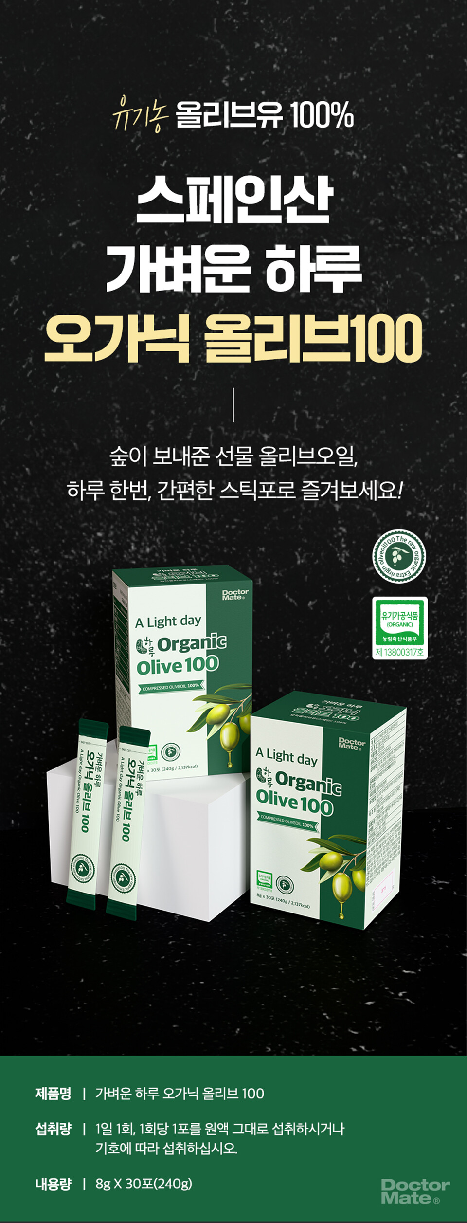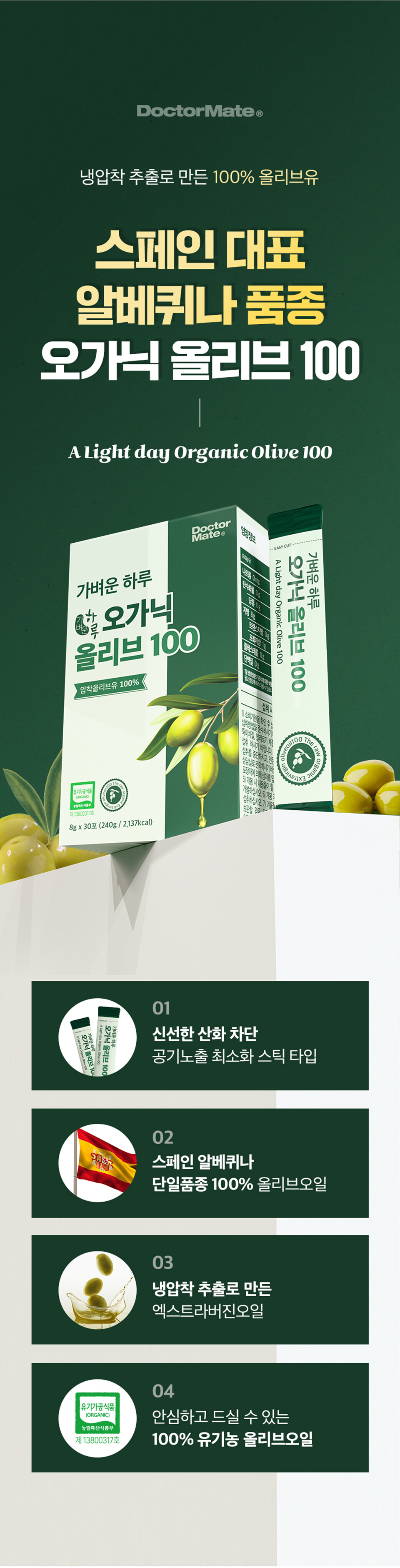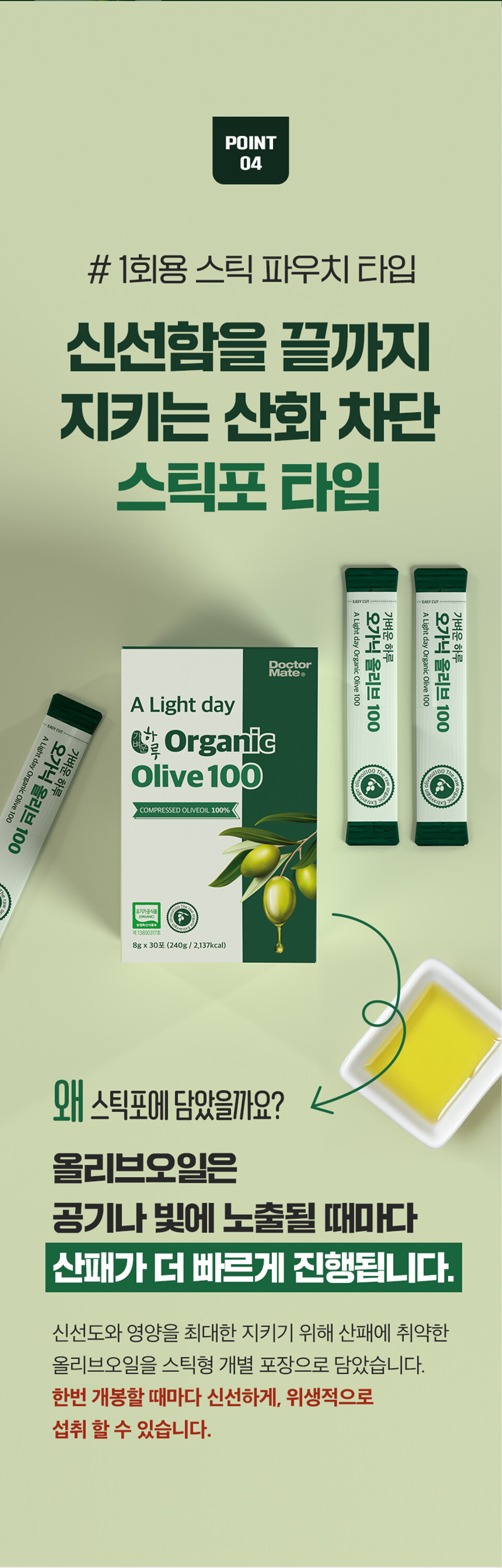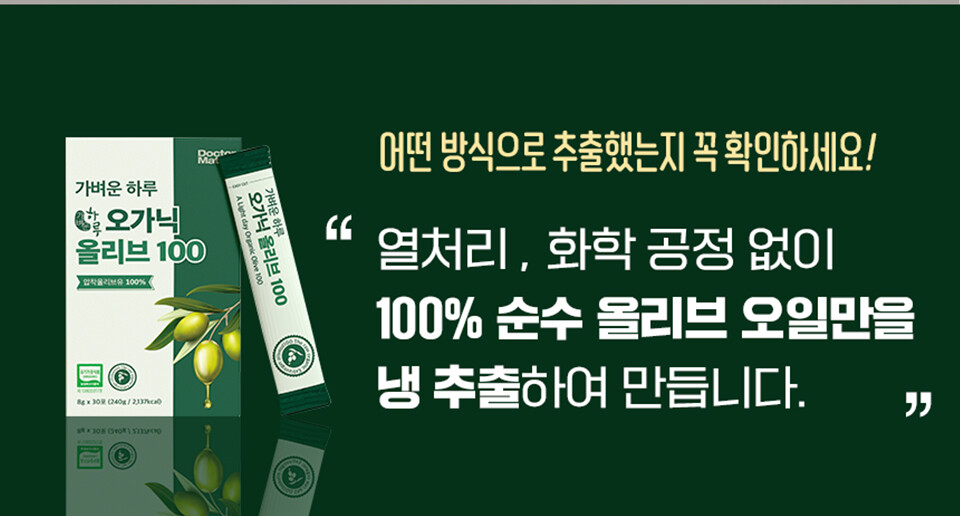 (육아크루 회원 전용) [닥터메이트] 1포 600원 | 스페인산 냉압착추출 엑스트라버진 올리브오일 스틱형 | 가벼운하루 오가닉 올리브 100