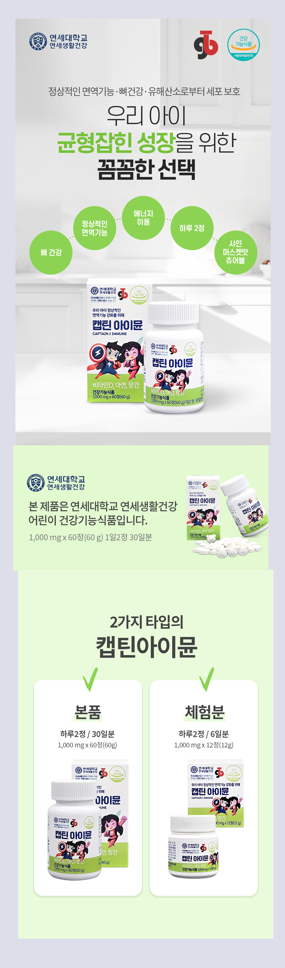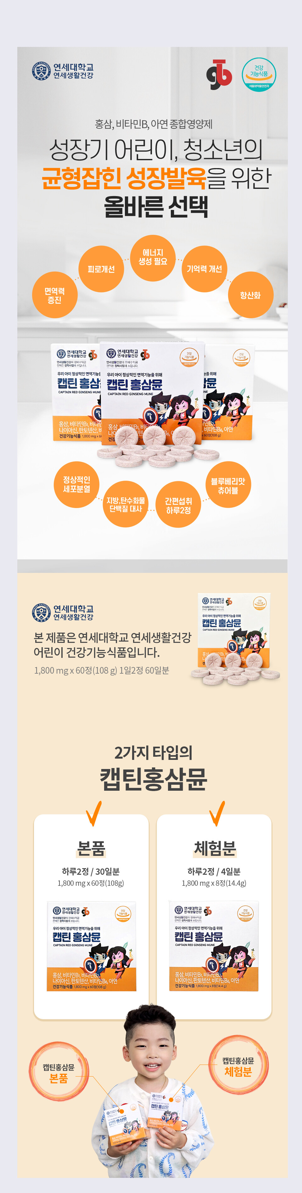 (회원 전용) [1개월치 6,740원] 연세생활건강 캡틴아이뮨ㅣ 캡틴홍삼뮨 (어린이 면역기능 강화 건강기능식품)의 사본
