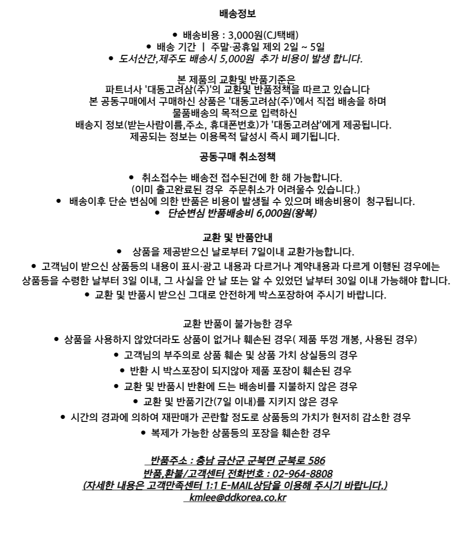 - 본 공동구매에서 구매하신 상품은 대동고려삼(주)에서 직접 배송하며,