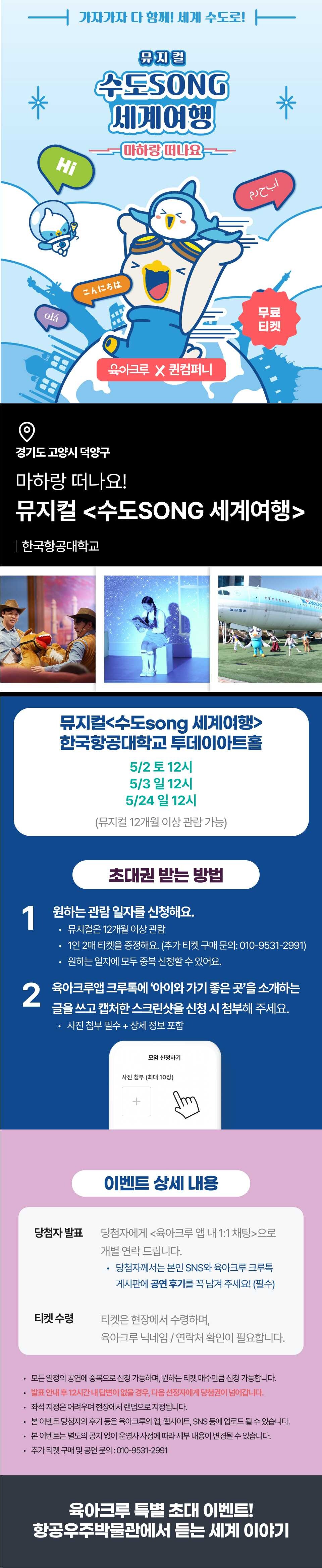 🎈<수도SONG 세계여행> 뮤지컬 티켓 안내🎈