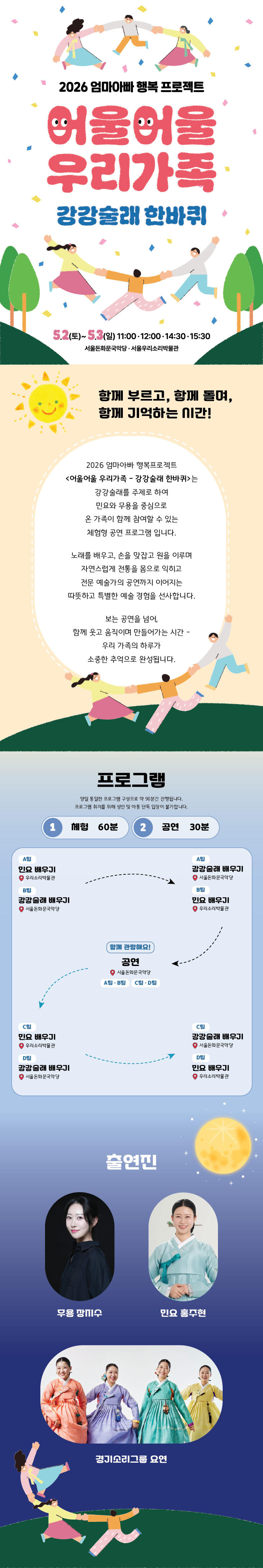 🎤 민요 배우고 → 💃 강강술래 돌고 → 🎭 공연까지!