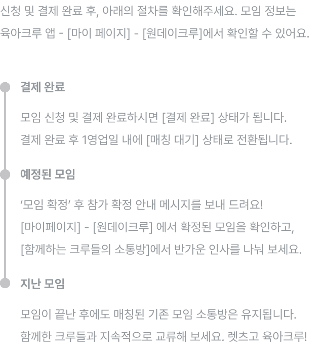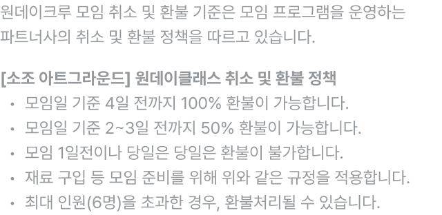 - 모임일 2일 전까지 취소 가능하며, 자세한 내용은 [안내사항] 취소 및 환불 정책을 참고해 주세요.