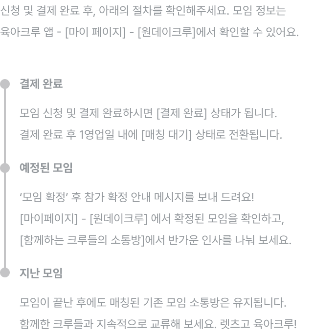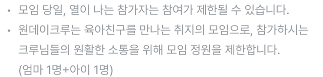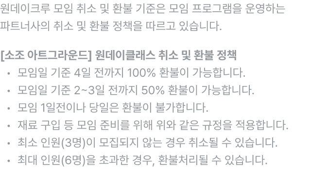 - 모임일 2일 전까지 취소 가능하며, 자세한 내용은 [안내사항] 취소 및 환불 정책을 참고해 주세요.