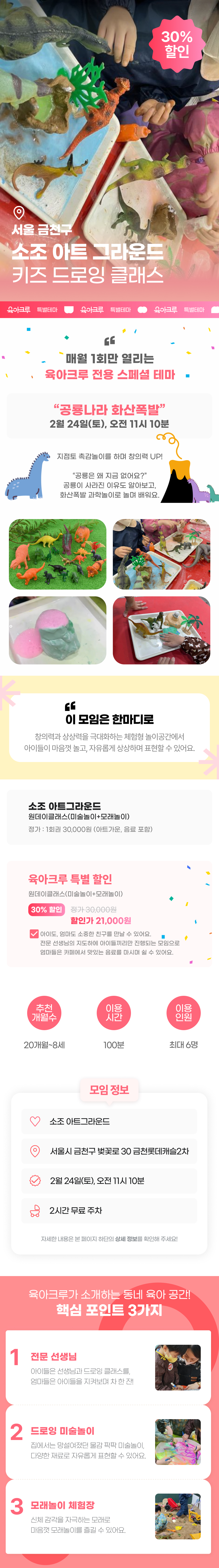 모임 정보 : 소조아트그라운드, 화산도 만들고 공룡도 그리는 금천키즈카페 키즈 드로잉 클래스 [30% 할인]