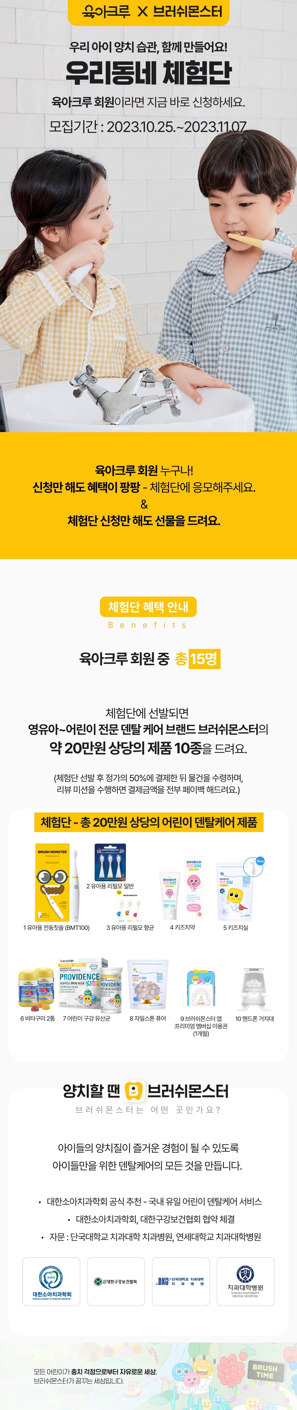 [체험단/20만원 상당 증정 (10종세트)] 아이 치아건강 관리를 위한 덴탈케어 제품 체험해요 with 브러쉬몬스터
