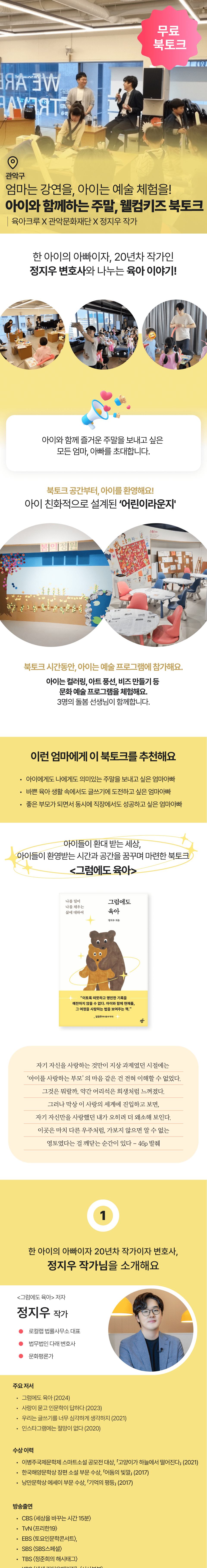 [어린이라운지/무료] 아이와 함께 참여하는 일요일의 북토크, 정지우 작가 <그럼에도 육아>