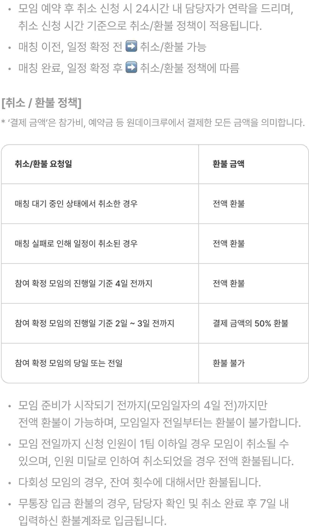 취소 및 환불 안내