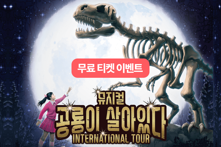 8만원 상당의 공룡이 살아있다 뮤지컬 티켓 <인당 2장씩> 받아가세요!
