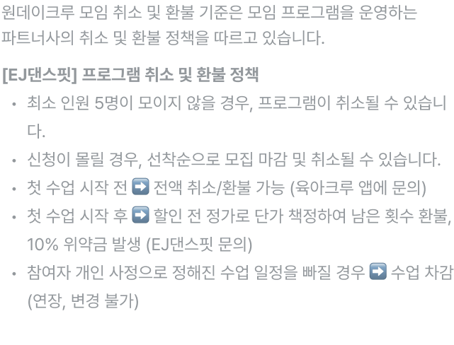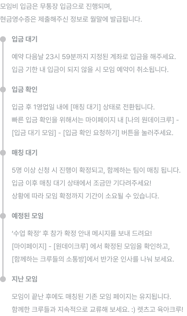 - 선착순 마감될 수 있으며, 원데이클래스 참여하신 크루님들은 월간클래스 우선 신청이 가능합니다.