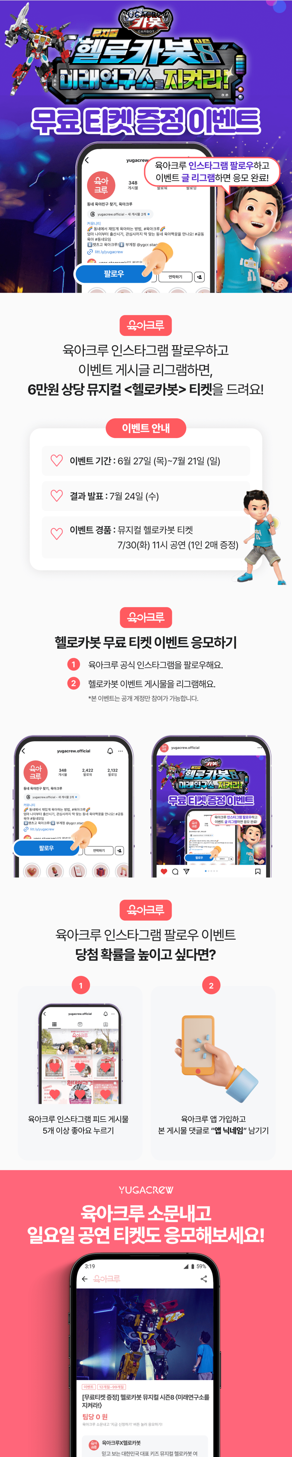 ✅ 참여 방법 : 육아크루 공식 인스타그램(yugacrew.official) 팔로우하고, 이벤트 게시글 리그램하기!