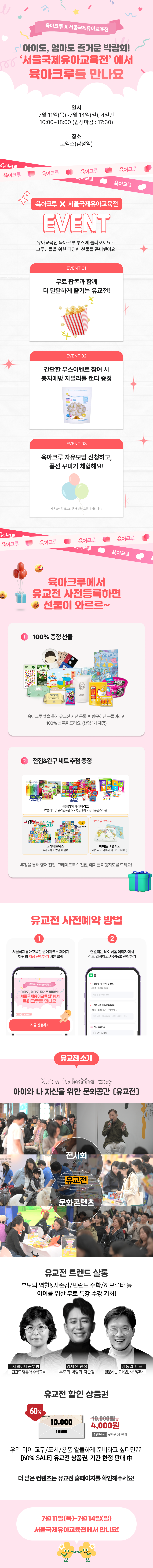 모임 정보 : 2024 서울유아교육전 무료 티켓 육아크루에서 사전등록하면 100% 선물 증정