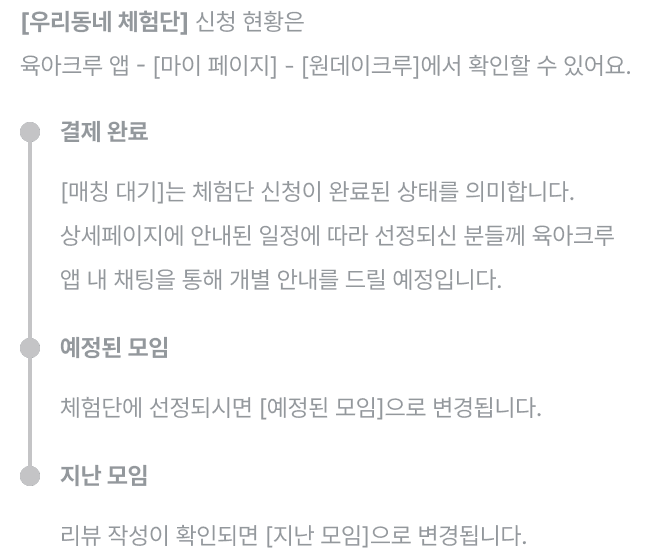 - 체험단에 선정된 이후, 체험 일정을 조율합니다.