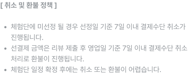 - 체험단 일정이 확정 된 후에는 취소 또는 환불이 어렵습니다.