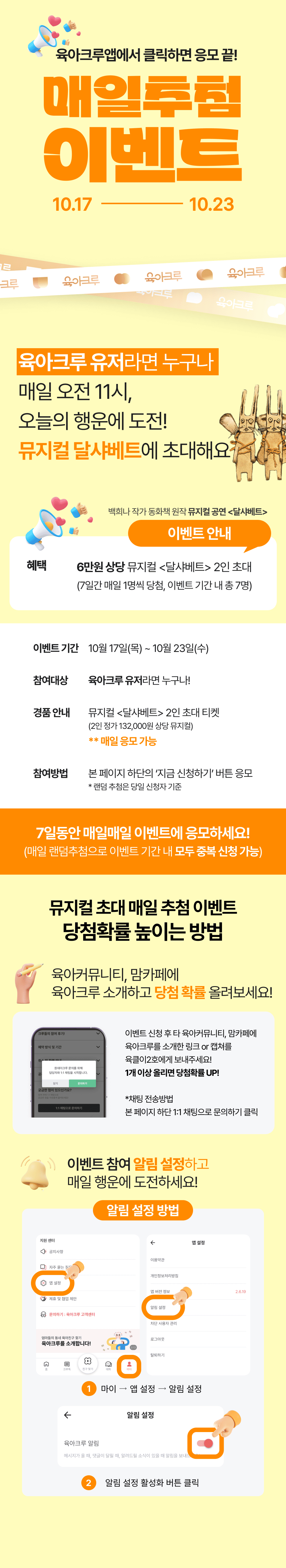 육아크루 앱 내 <1:1 문의하기> 또는 <육클이2호> 에게 1:1 채팅 으로 부탁드립니다!