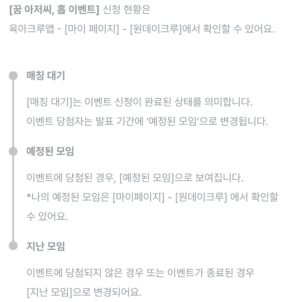 ✅ 참여 방법 : 육아크루 앱 - 원데이크루에서 '지금 신청하기' 버튼을 눌러 응모!