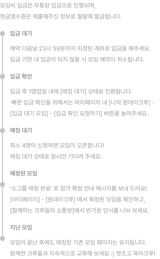 - 모임비 입금 확인 후, 예약이 확정됩니다.