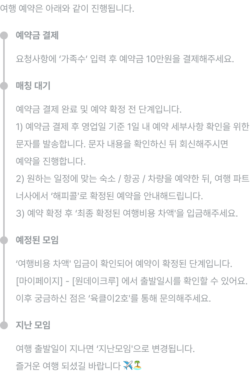 ✅ [예약확정] 항공/숙소/차량 예약이 확정되면 해피콜로 세부사항 및 차액 입금 안내 드려요.