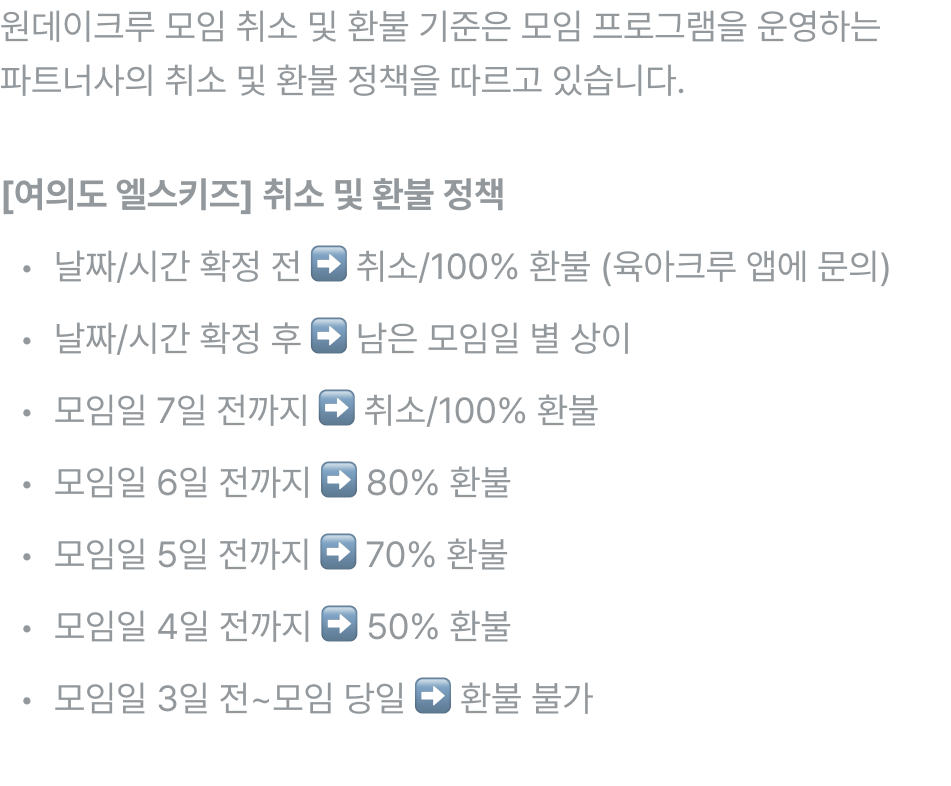 - 원데이크루 SNS 후기 1개 & 앱 내 크루톡에 후기 1개 각각 작성 필수 (참석일 이후 1주일 내)